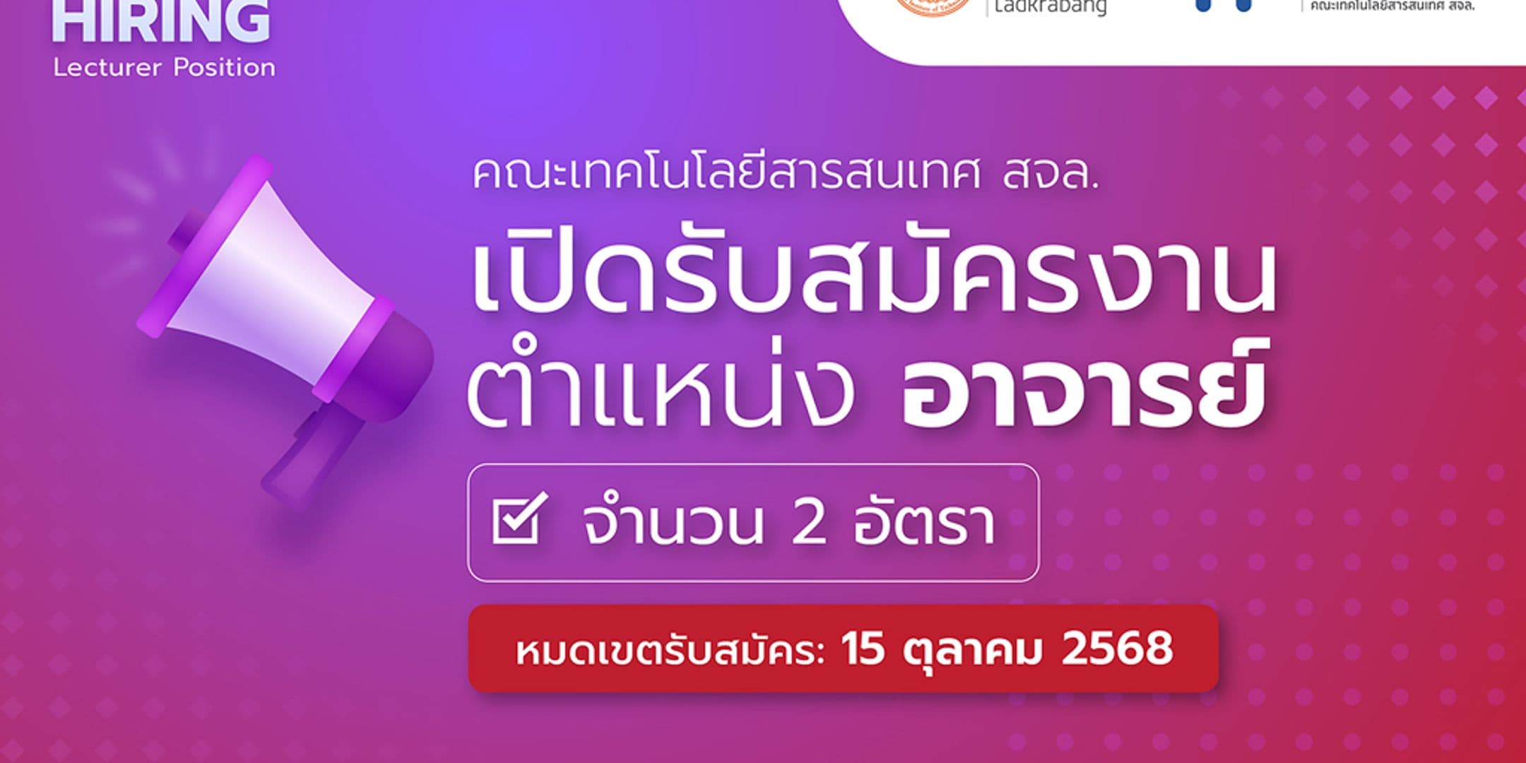 เปิดรับสมัครคัดเลือกบุคคลเพื่อบรรจุเป็น พนักงานสถาบันสายวิชาการ ตำแหน่งอาจารย์ จำนวน 2 อัตรา